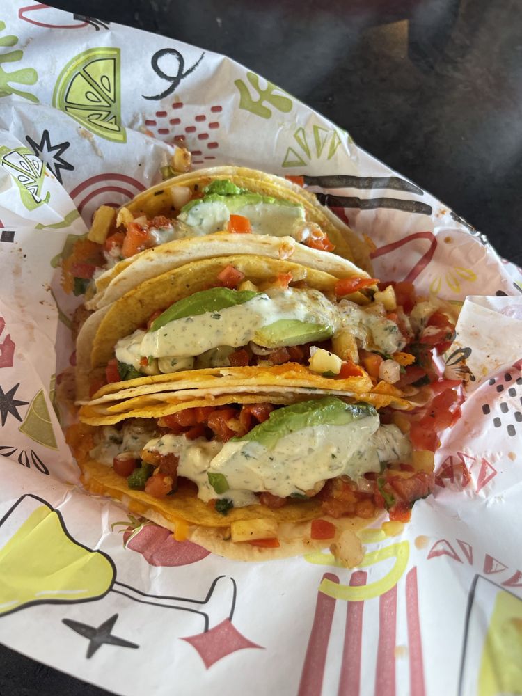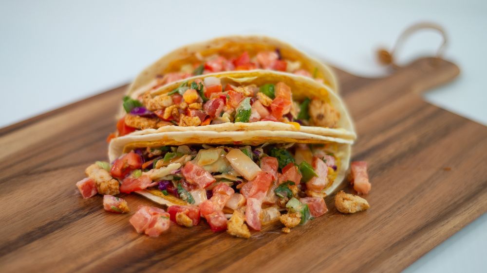 Our classic double decker tacos filled with grilledmarinated chicken tossed in Cajun spices and topped with shredded lettuce, Roasted peppers and onions mix, and our Spicy Nashville Aioli.