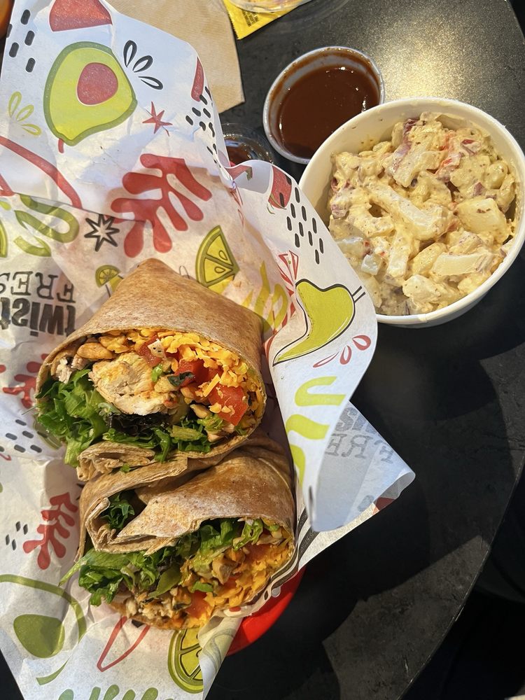The menu boasts standout items like the Bistro Steak Wrap, featuring marinated steak enveloped in a creamy blend of bistro cream cheese and bacon, serving up a perfect balance of flavors. Customer favorites include the teriyaki chicken wrap and Cajun chicken tacos, which showcase the restaurant's commitment to fresh ingredients and varied tastes.