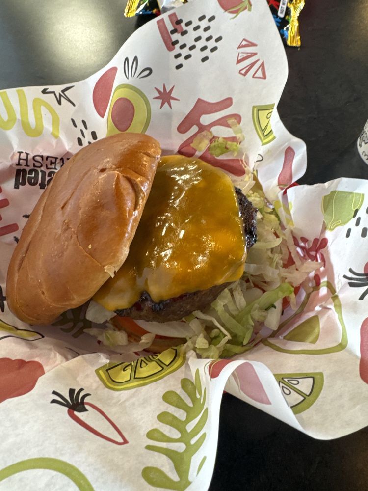 Seasoned 8oz burger patty topped with pepper jack cheese, roasted onion, bell pepper, poblano pepper mix, Pico, and a Citrus crema.